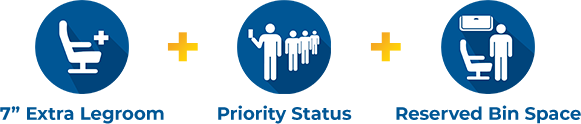Available on select flights and routes, Allegiant ExtraTM provides the most comfort and convenience. Enjoy 7" extra legroom and Priority status for check-in and boarding. That gives you the added convenience of deplaning first as well. Plus, you'll have reserved overhead bin space. Extra makes your trip that much smoother.